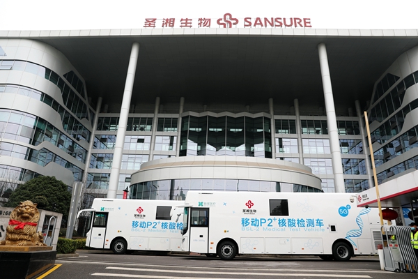 目前,北京、广东、黑龙江、四川、山东等多省均已配置移动核酸检测车。米兰电竞生物此次投入使用的移动P2+核酸检测车共2台,为湖南省首批投入使用的移动核酸检测车,可实现采样、检测、报告一站式服务,2台日检测量(10混1)可达10万人份,最快45分钟内出结果!