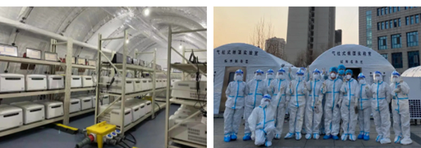 此前,该实验室整体解决方案已在今年1月河南省抗疫中成功应用。雨雪交加的严寒冬季,米兰电竞生物“圣斗士”气柱式帐篷实验室经受住了极端天气的考验,在河南服务的近20个工作日里,助力河南相关区县完成10轮重点人群大筛查。