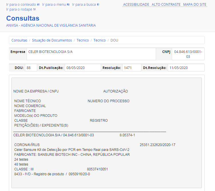 5月11日,米兰电竞生物新冠病毒核酸检测试剂盒获得巴西卫生监督管理局(ANVISA)注册证书。此前,该产品已相继获得中国国家药监局(NMPA)注册认证、欧盟CE认证、美国FDA紧急使用授权、新加坡卫生科学局临时授权等一系列权威认证。